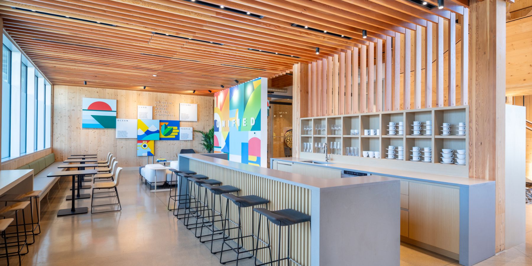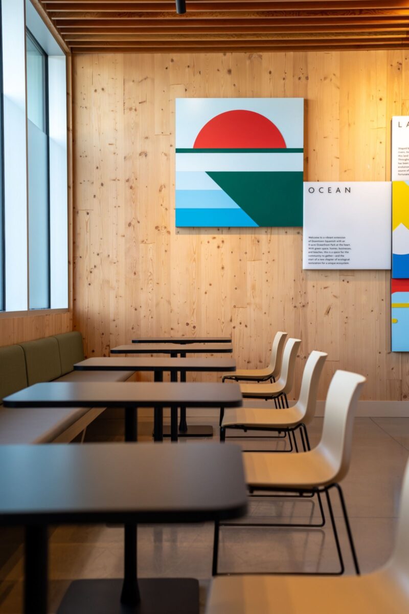 Set against the dramatic backdrop of the Sea-to-Sky corridor, the Oceanfront Squamish Discovery Centre reimagines the traditional presentation centre as an immersive community hub. Warm mass timber architecture and natural materials create a welcoming space where visitors can gather, explore the vision for the waterfront, and experience the story of ocean, land, people, and future.